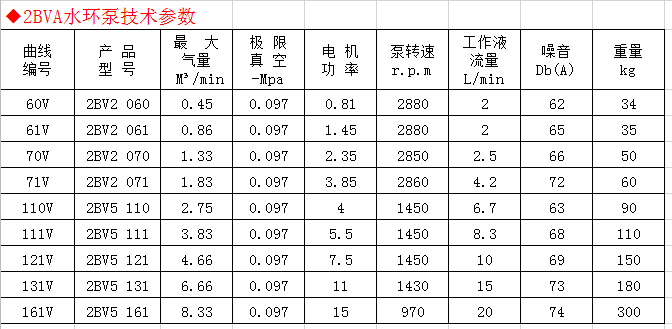 2BVA5131水環真空泵適用于抽除氣體和水蒸氣吸氣壓力可以達到33mbar絕壓(97%真空度)。當水環真空泵在吸氣壓力接近極限真空(工作液和蒸汽壓),下長期工作時應聯接汽蝕保護管,以對泵進行保護。作為壓縮機用時,其壓力最大至0.26Mpo(絕壓)。2BV系列水環真空泵作為新一代節能型產品,其出色的性能及眾多優點將全面取代同性能的SK、2SK系列水環真空泵及W、WY、WL系列往復真空泵。